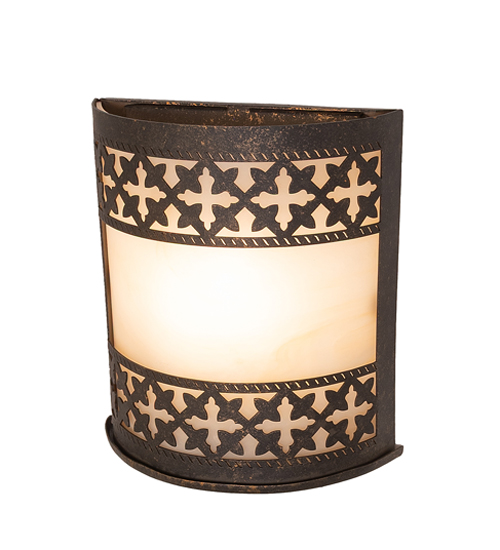 Offering a blend of timeless craftsmanship and classic design. Cardiff brings home unsurpassed quality and shapely appeal. The Sahara Taupe Idalight shade features stunning Gothic-styled accents and is enhanced with a dramatic design and frame offered in a Golden Bronze finish. The exquisite ADA-compliant wall sconce beautifully illuminates dining areas and entryways in fine homes and restaurants. The Cardiff Wall Sconce is included in our American-made, American-designed, handcrafted Gothic Lighting Collection and is manufactured in Yorkville, NY. The fixture is UL and cUL listed for dry and damp locations.