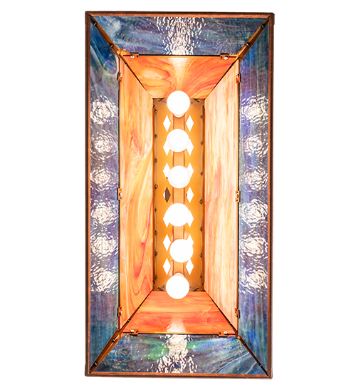 The majestic Moose meanders near the woodland lake in this nature-inspired pendant design. The fixture features an Orange Sky and a Blue-Green lake in beautiful art glass. The pendant is enhanced with an Industrial Copper Premium finish. The oblong pendant is perfect for illuminating bars, islands, and tables in timber homes, lodges, and other spaces. The overall height ranges from 19 to 162 inches, as the chain easily adjusts in the field to meet your exact specifications. The Moose at Lake Oblong Pendant is included in our American-made, American-designed, handcrafted Wildlife Collection and is manufactured in Yorkville, New York. The fixture is UL and cUL listed for dry and damp locations. Upstate New York's adventurous playland, known as the Adirondack Mountains, with its many breathtaking forests, lakes, and rivers, is the spiritual birthplace of Meyda and inspires our rustic-themed art glass collections.