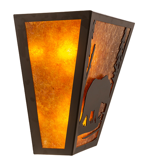 A majestic Bear wanders down to the mountain creek for a refreshing drink as the brilliant morning sun rises. Pleasant ambient light projects through warm Amber Mica, which is complemented with hardware and decorative accents featured in an Antique Copper finish. This fixture is complemented with the matching Bear Creek Left Wall Sconce, model 169334. The Bear Creek Wall Sconces are included in our American-made, American-designed, handcrafted Nature Inspired Lighting Collection and manufactured in Yorkville, NY. UL and cUL listed for dry and damp locations. Upstate New York's adventurous playland, known as the Adirondack Mountains, with its many breathtaking forests, lakes, and rivers, is the spiritual birthplace of Meyda and inspires our rustic-themed mica collections.