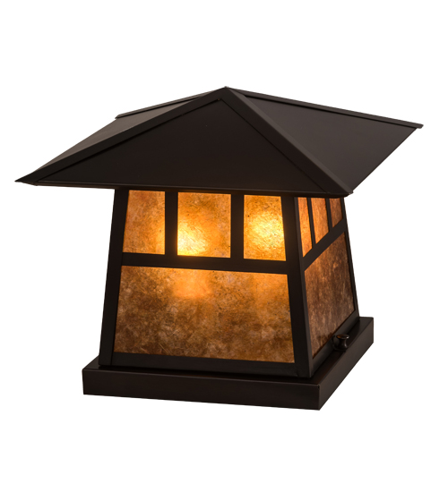 The Double Bar Mission has a pair Arts and Crafts style crossed bars that accent this handsome American Craftsman lantern style pier mount. The fixture, handcrafted in the USA by Meyda artisans, is finished in Craftsman Brown and has Amber mica panels.
