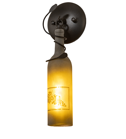 4" Wide Tuscan Vineyard Etched Grapes Wine Bottle Wall Sconce