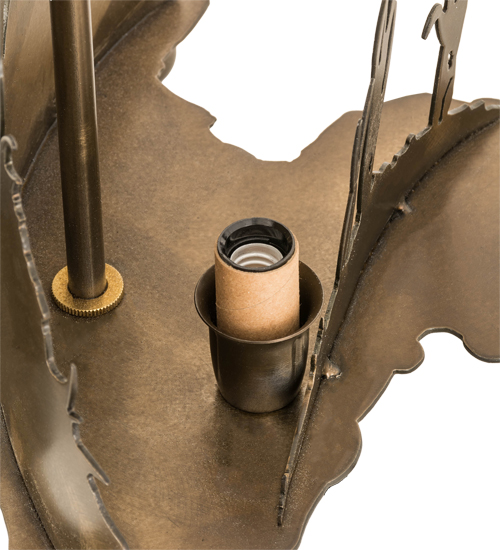This striking lighting design features silhouettes of a sportsman hunting in the woods with a trusty dog by his side on the decorative base while ducks in flight are depicted in the shade design. Beautiful ambient light projects through Beige art glass which is complemented with a steel frame and hardware featured in an Antique Copper finish.A 3-section switch lights up the shade, base or both.Handcrafted by highly skilled artisans in our manufacturing facility at the foothills of the Adirondack Mountains, this lamp is available in custom designs, sizes and styles. Energy efficient lamping options such as LED are available.The lamp is dry listed for interior use.