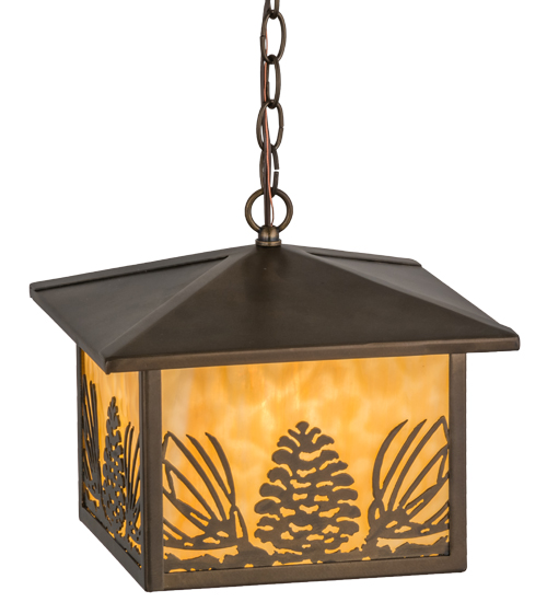 Mountain pinecones and pine needles are depicted on this unique nature inspired pendant. Rustic charm comes alive with soft warm ambient light through Beige art glass that is accented by hardware featured in an Antique Copper finish. The fixture is perfect for hallways, entryways, foyers, covered porches and other rooms where you want to make a design statement. The pendant is handcrafted by Meyda artisans in our manufacturing facility, at the foothills of the Adirondack Mountains.