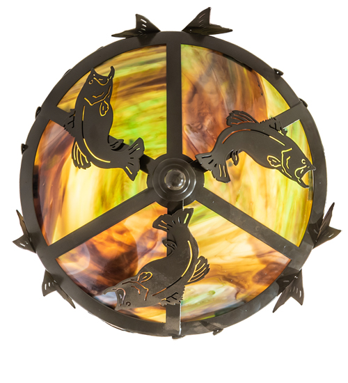 Anglers will delightfully cast their lines for these prized Largemouth Bass, Pike, and Rainbow Trout, which are leaping out of the lake over this stunning Green Art Glass shade. The shade is complemented with Timeless Bronze hand-finished decorative accents and fishhook chains. The overall height ranges from 24 to 53 inches, as the chain length can be easily adjusted on location to accommodate your specific lighting application needs. The Catch of the Day Inverted Pendant is included in our American-made, American-designed, handcrafted Wildlife Collection and manufactured in Yorkville, New York. UL & cUL listed for dry and damp locations. Upstate New York's adventurous playland, known as the Adirondack Mountains, with its many breathtaking forests, lakes, and rivers, is the spiritual birthplace of Meyda and inspires our rustic-themed collections.