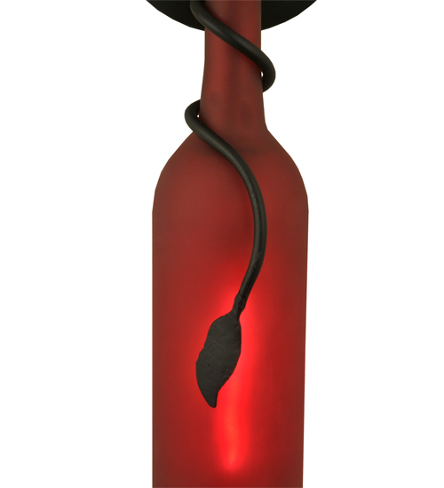 Capture the life of the party with the whimsical design of the Meyda Wine Bottle wall sconce. Liven up a restaurant, club, or home with a wall fixture that does so much more than deliver light; it adds personality and pizzazz. A Black finished wall plate with a Vine-like metal accent embraces a Frosted Red Glass Wine Bottle. Create a stunning design statement by installing this wall fixture in corridors and dining areas in homes, restaurants, hotels, pubs, nightclubs, and wineries; connoisseurs will appreciate this luminaire's fine detail and charm. This rich-looking Tuscan Vineyard Frosted Red Wine Bottle Wall Sconce is included in our American-made, American-designed, handcrafted Wine Bottle Lighting Collection. The fixture is manufactured in Yorkville, New York. UL and cUL listed for dry and damp locations. Take your finest bottle of wine, and Meyda will transform it into an everlasting personalized fixture of light. Contact us for more information on custom wine bottle lighting fixtures and lamps. We can also create custom lighting with beer bottles, mason jars, milk bottles, and other glass containers and vessels.?