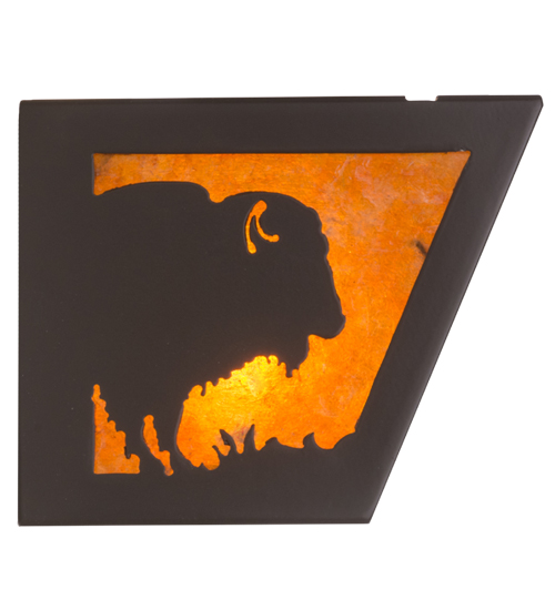 The majestic Buffaloes stand in all of their glory, as symbols of strength and unity, on the prairie as the mid-afternoon sun shines brilliantly in the background. Beautiful ambient light emanates through stunning Amber Mica, which is complemented with hardware and decorative accents featured in a Timeless Bronze finish. The wall fixture is ideal for illuminating baths, corridors and other rooms in any setting. This fixture is handcrafted by Meyda artisans in the Yorkville, New York manufacturing facility at the foothills of the spectacular Adirondack Mountains. Custom styles, colors and sizes are available, as well as dimmable energy efficient lamping options.