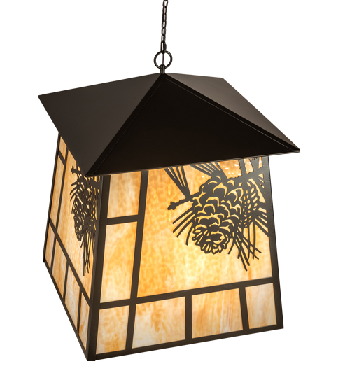Winter Pinecones and Pine Needles glow on a stunning Beige Art Glass background. Rustic charm comes alive with soft ambient light from this Nature Inspired wall fixture, enhanced with a Timeless Bronze finish. Overall height ranges from 48 to 120 inches as the chain easily adjusts in the field. This handsome luminaire will illuminate the interiors and exteriors of timber homes, modern farmhouses and other spaces. The Stillwater Winter Pine Lantern Pendant is featured in our American-made, American designed handcrafted Craftsman Signature Lighting Collection. Manufactured in Yorkville, New York. UL and cUL listed for dry and damp locations.