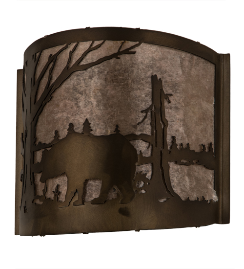 The call of the wild comes to light with a majestic Bear roaming around the woodland lake. Beautiful ambient light shines through the Silver Mica lens while the fixture is enhanced with accents and hardware featured in an Antique Copper finish. The ADA-compliant wall sconce can be installed in dining rooms and entryways in residential, hospitality, and commercial spaces. The Bear at Lake Wall Sconce is featured in our American-made, American-designed, handcrafted Wildlife Lighting Collection. This fixture is manufactured in Yorkville, New York. It is UL and cUL listed for dry and damp locations. Upstate New York's adventurous playland, known as the Adirondack Mountains, with its many breathtaking forests, lakes, and rivers, is the spiritual birthplace of Meyda and inspires our rustic-themed mica collections.