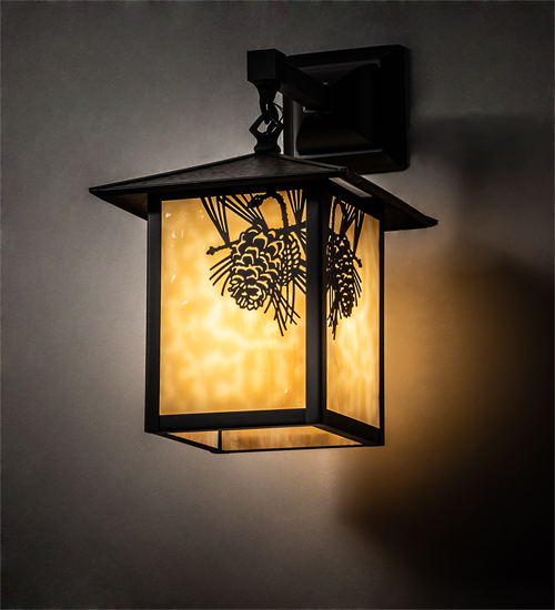 16" Square Seneca Winter Pine Curved Arm Wall Sconce