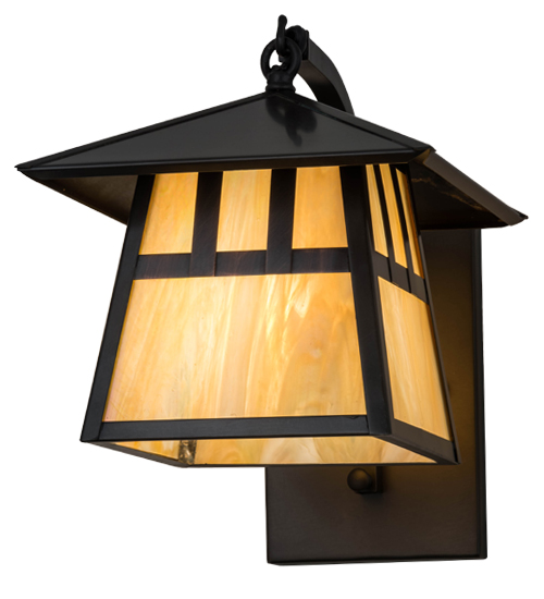 Custom made from Solid Brass. A dramatic Mission-styled straight-line design creates a stunning Craftsman design statement. It is highlighted with a Beige Iridescent Glass shade and a curved arm and hardware featured in a Craftsman Brown finish. This handsome wall sconce is constructed for interior and exterior applications. It can be mounted to walls while providing beautiful ambient lighting in timber homes, modern farmhouses, and other spaces from Traverse City, Michigan, to Lake Tahoe, Nevada, to Lake Geneva, Wisconsin. The Stillwater Double Bar Mission Curved Arm Hanging Wall Sconce is included in our American-made, American-designed, handcrafted Craftsman Signature Series and manufactured in Yorkville, New York. UL and cUL listed for dry, damp, and wet locations. Our Build Your Own Craftsman Signature Series features unlimited combinations of styles, functions, sizes, and finishes. Options include lanterns, pier and post mounts, and deck lights crafted of marine-grade materials like brass and copper with timeless living finishes offered to endure harsh climates.