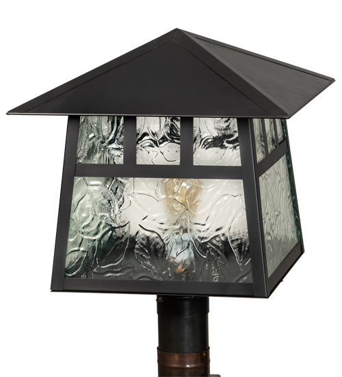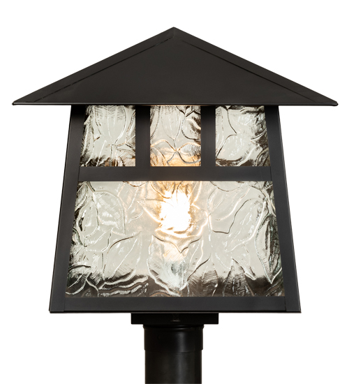 Custom made from Solid Brass. A stunning Craftsman design statement is created with a dramatic Mission-styled straight-line design highlighted with Clear Leaf art glass shade and a Craftsman Brown finish. This handsome post mount is constructed for interior and exterior applications. The fixture can be mounted to columns, posts, and decks while providing beautiful ambient lighting in timber homes, modern farmhouses, and other spaces from Traverse City, Michigan, to Lake Tahoe, Nevada, to Lake Geneva, Wisconsin. The Stillwater Double Bar Mission Post Mount is included in our American-made, American-designed, handcrafted Craftsman Signature Series and manufactured in Yorkville, New York. UL and cUL listed for dry, damp, and wet locations. Our Build Your Own Craftsman Signature Series features unlimited combinations of styles, functions, sizes, and finishes. Options include lanterns, pier mounts, and deck lights crafted of marine-grade materials like brass and copper with timeless living finishes offered to endure harsh climates.