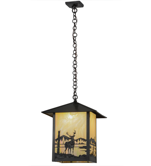 Custom crafted of Solid Brass, this striking pendant design captures a deer standing tall alongside a mountain creek with the morning sun rising in the background. Warm ambient lighting shines through stunning Beige Iridescent art glass enhanced by the decorative accents, frame and matching hardware featured in a Craftsman Brown finish. Handcrafted in the Meyda manufacturing facility, located at the foothills of the Adirondack Mountains.