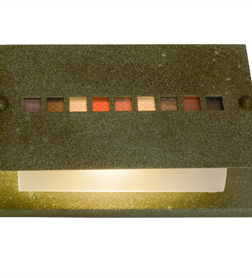 Inspired by naturally weathered stones on the path to a cozy cottage in the woods, Autumn-colored fused glass are hand-set on raised side panels of this Arts &Crafts styled, two-light wall fixture. Behind the art glass insets is a layer of Frosted glass to provide a unique decorative ambiance. The raised panels and and hardware are hand-finished in Tarnished Copper to create the signature look of American Bungalow. Ideal as a vanity light in a bath or a sconce in a corridor, this fixture is handcrafted by Meyda artisans at the foothills of the beautiful Adirondacks.