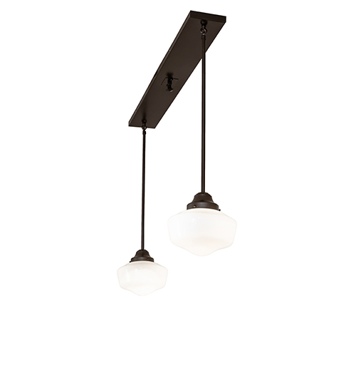The Revival Schoolhouse glass reflects an authentic classic design. 2 perfectly formed shades of White Opal Schoolhouse Glass are handcrafted with rich artisanship and style. Originally used in private residences, schools, galleries and libraries, this Schoolhouse electrical reproduction pendant will illuminate counters, islands, tables and bars in residential and hospitality settings. The Brass constructed pendant is enhanced with a Craftsman Brown finish. The Revival Schoolhouse 2 Light Pendant is included in our American-made, American-designed, handcrafted Schoolhouse Lighting Collection. Manufactured in Yorkville, NY. UL and cUL listed for dry and damp locations.